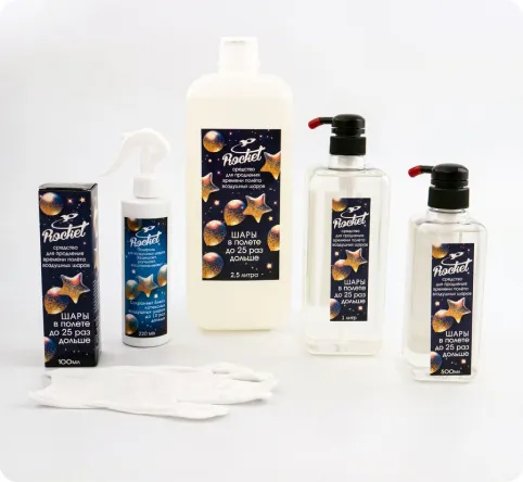 У нас есть собственная торговая марка, которая включает в себя: воздушные шары, сервировку, полиграфию, подарочные пакеты, свечи, подарочные коробки. Наши сотрудники создают собственные дизайны для всех этих видов продукции.